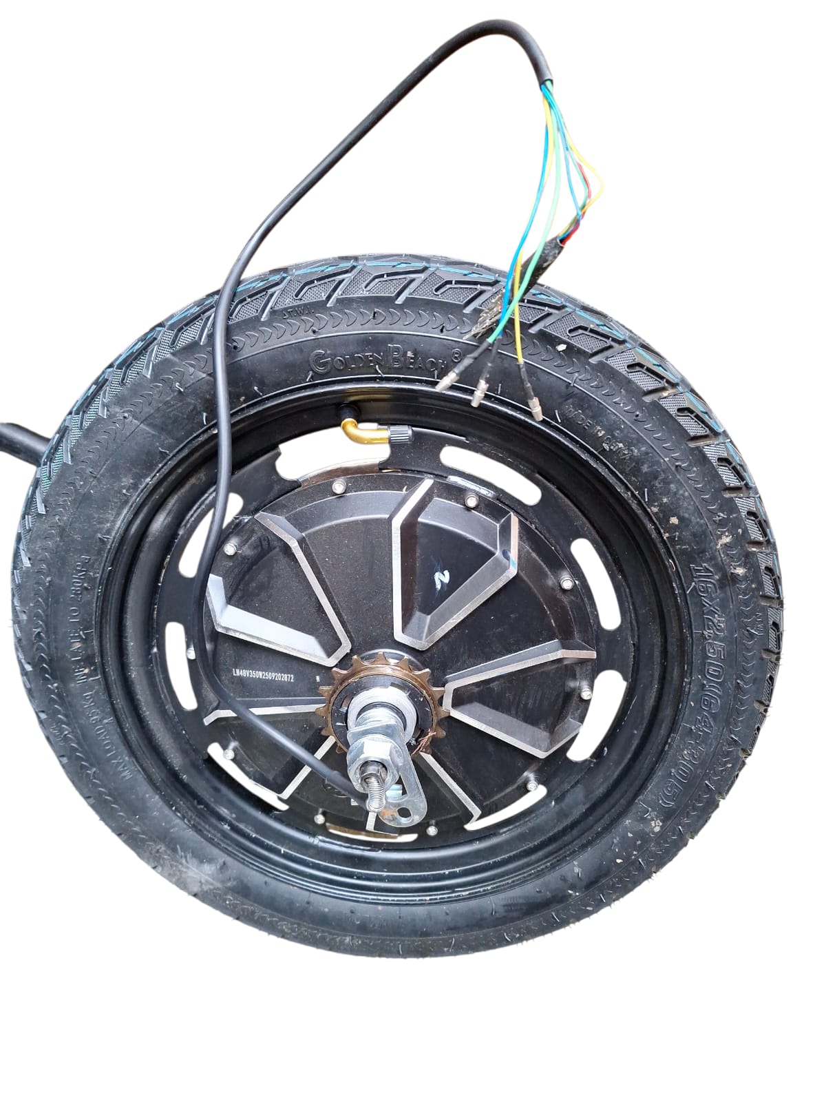 Motor electric in roata 16″ pentru moped electric. Vine cu anvelopa montata si cablu gata de conectare.