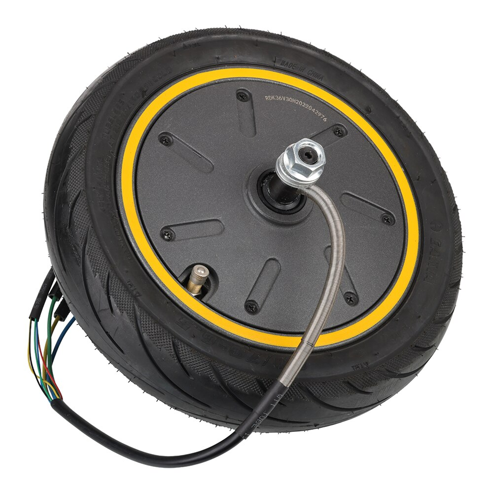 Motor universal compatibil cu trotineta electrica Ninebot Max G30, putere 350W, 36V, roata completa echipata cu anvelopa solida (fara camera), ideala pentru inlocuire sau upgrade.